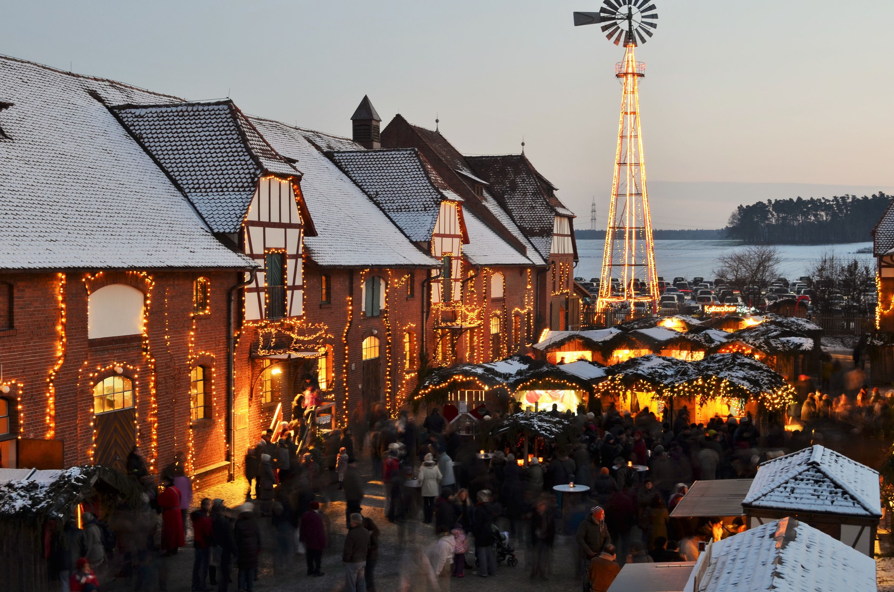 Tagsüber in Nürnberg und nachmittags zum beliebten Weihnachtszauber von Schloss Hexenagger auf Gut Wolfgangshof im Ambiente der fränkischen Fachwerk-Gebäude mit der spektakulären Feuershow um 19 Uhr.